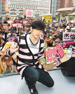 许多排在前面的歌迷前晚7时就开始排队了,为与偶像见面,一早准备好御寒衣物,自日本、韩国的歌迷,纷纷在签名时用国语问候周杰伦,还和他相约演唱会上再见。签唱会进行中的卡拉OK时间,更有来自日本的歌迷演唱周董的新歌,让他非常感动,他对日本歌迷说:“希望日本武道馆演唱会上,大家可以学好我的新歌,跟我一起大合唱。”