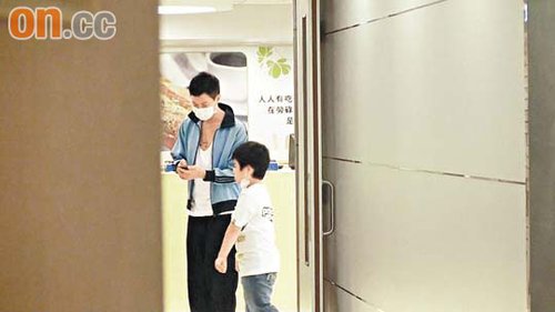 戴上口罩的张家辉带着疑是大傻小儿子的小孩在浸会医院现身